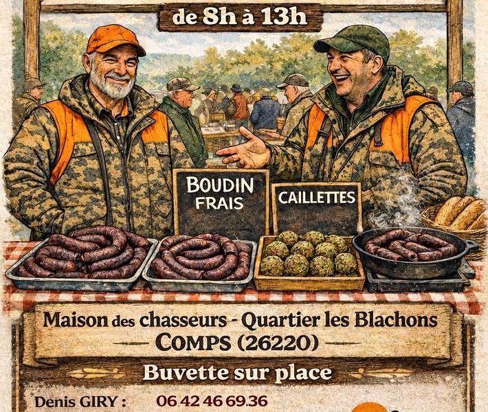 invitation pour la journée “boudins” organisée par l’ACCA de Comps le dimanche 22 février 2026 à partir de 8 h, au cabanon de la chasse. Sur place, il […]