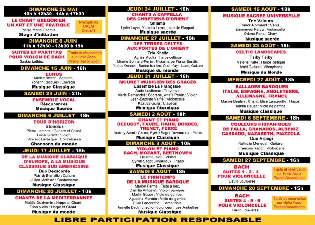 Programme Comps Historique 2025 3 juillet 2025 Sylviane MASSON Aucun commentaire Programme de tous les concerts organisés par Comps Historique dans l’église en 2025 Étiqueté avec Comps Historique accueil
